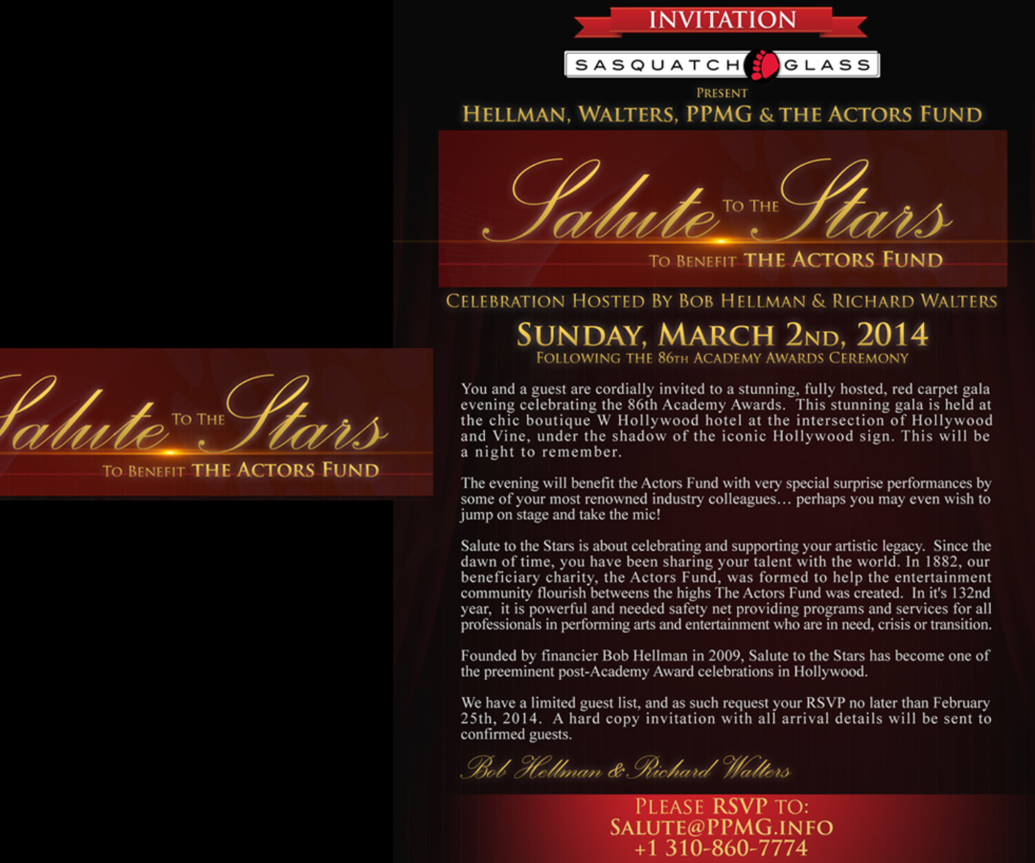 27 Mar 2015 Salute To The Stars Event Salute To The Stars Event - Branding, Logo, Print, Digital, Invitations, Signage, Supplemental Material admin